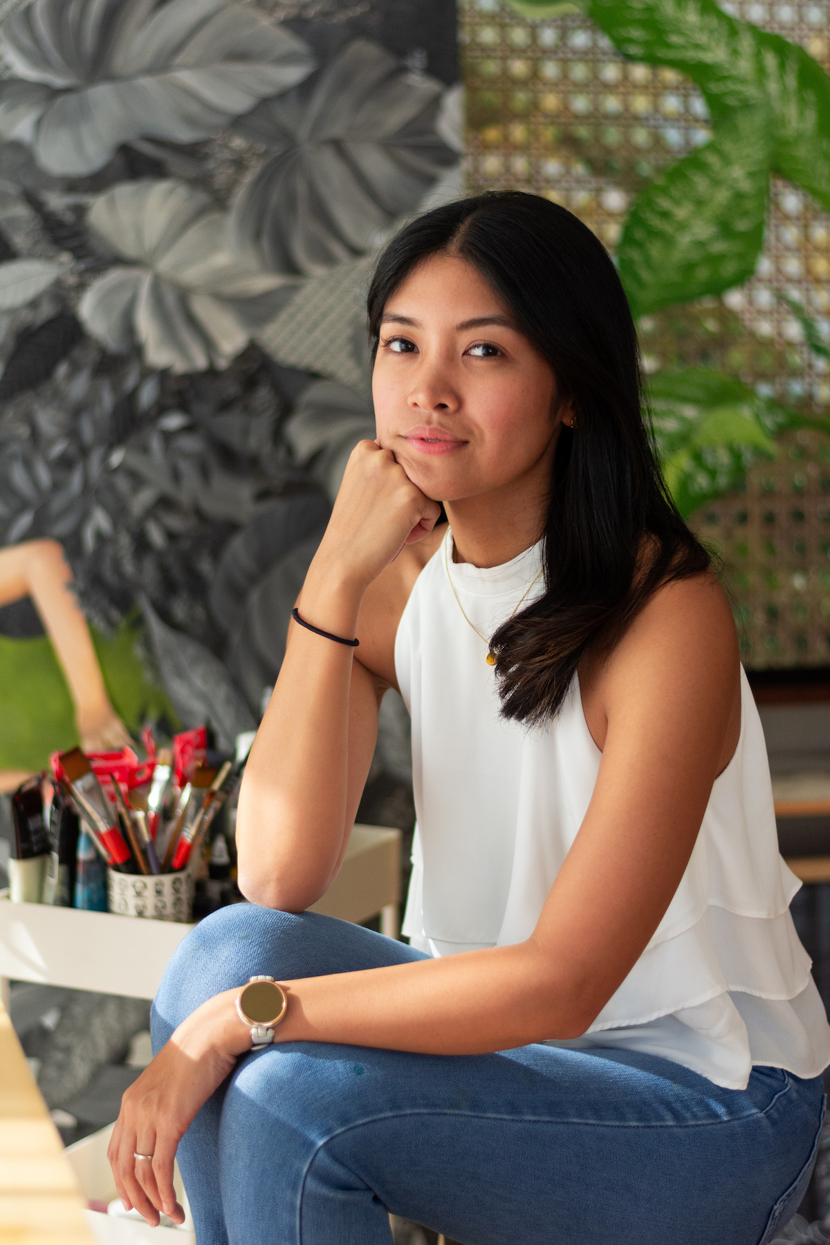 She started off in 2011 creating only black & white art, with pen & ink as her medium. Hence, her artist brand name Details Ink and the black & white signature look that can be found in almost all her early work. After years of working with different brands and creating murals here and there, she found her sweet spot as a painter and enjoys creating from her home studio.